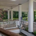 • 🪑 Wraparound covered mahogany porch w/ comfortable seating